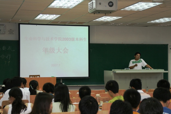 2007年7月10日,生命科学与技术学院在3号楼308教室,召开了2003级毕业生最后一次年级大会,大会由生命学院2003级辅导员王征老师主持召开。