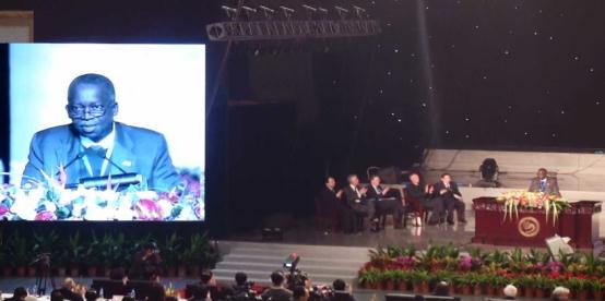 随后,五位中外大学校长作为特邀嘉宾代表全球五大洲做了主旨发言。拉各斯大学校长萧佛鲁维教授作为五名特邀嘉宾之一代表非洲做了题为“在非洲孔子学院建设的新思路”的报告。报告中,萧佛鲁维校长介绍了拉各斯大学孔子学院的办学经验。萧佛鲁维教授的报告谦虚而充实,演示文稿精彩纷呈,报告提及孔子学院与尼日利亚联邦政府及拉各斯大学校方关系之融洽令人鼓舞,多种多样的文化交流活动引人入胜……他对国家汉办的指导与支持、北京理工大学的大力支持及孔子学院喻佑斌院长的工作成绩表示了诚挚的感谢。萧佛鲁维教授的发言令非洲代表感到振奋。