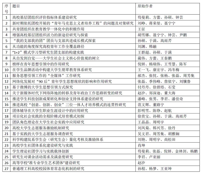 《德学研思》全书26.8万字,共有27篇文章,文章初稿均源自全校团干部的积极研究与实践,是一本具有鲜明共青团工作特色的研究文集。收入本书的文章为编者在此基础上进行进一步深化研究与总结而成,共分为“团建凝聚力量”、“信仰引领思想”、“实践助推成长”、“文化繁荣校园”四个篇章,这既是对高校共青团工作开展具有指导意义的理论成果,同时也反映出北理工共青团队伍的专业化建设水平和广大团干部勇于进取、不断创新的工作激情。