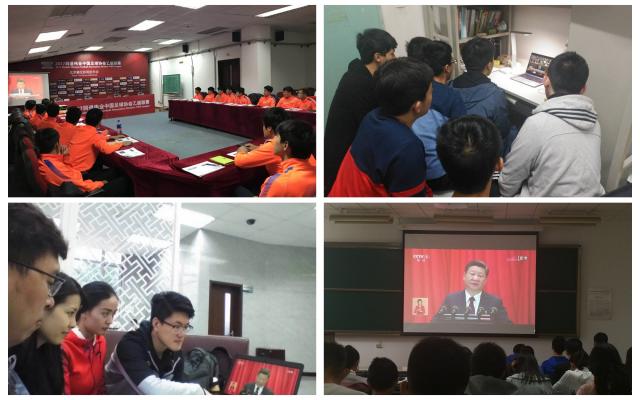 编辑:仇业涵 审核:彭明雪 阅读次数:2017年10月18日上午9:00,中国共产党第十九次全国代表大会开幕会在人民大会堂隆重举行。为认真领会贯彻会议精神,及时做好学习、宣传党的十九大精神各项工作,深入学习党的方针政策,加强广大学生干部的党性修养,在大会开幕之际,北京理工大学管理与经济学院党委组织各教工党支部和各学生党支部成员集体观看了十九大开幕会直播。与此同时,机关党支部书记、教工党支部书记、教工党员、各年纪研究生党支部书记和支委成员、学生党员等也积极以多种方式组织参与此次活动。