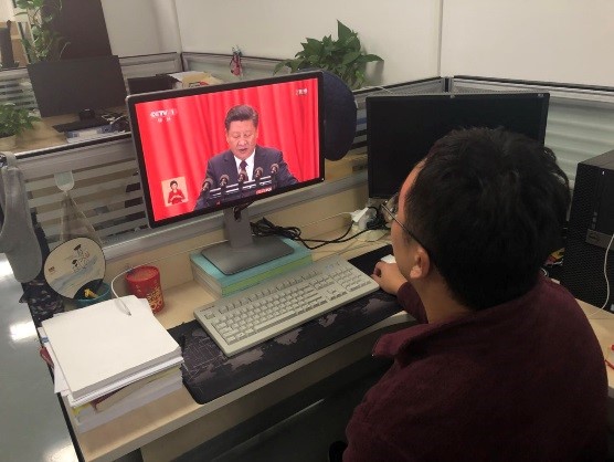 10月18日上午9点,宇航学院党委组织院班子成员及教师代表在宇航楼530会议室集中观看十九大开幕会,同时要求教师及学生党员采用多种方式观看开幕会。在各直播现场,广大师生认真观看,振奋不已,对党和国家未来发展充满期待。