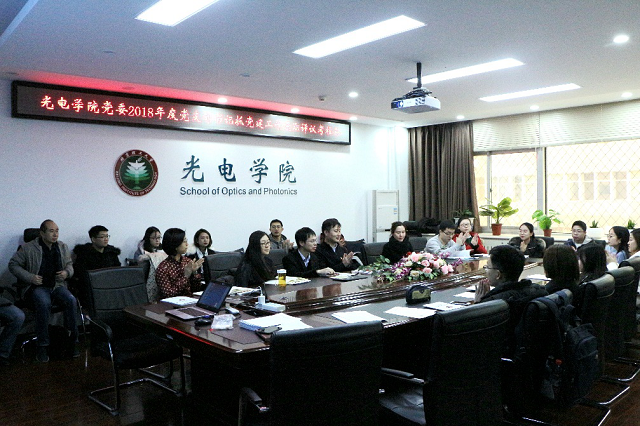 为推进全面从严治党向基层延伸,提升党支部组织力,2019年1月7日,光电学院党委召开了2018年度党支部书记述职评议考核会。党委组织部副部长何骁威,孙硕参加述职评议考核会。会议由光电学院党委书记邹锐主持。