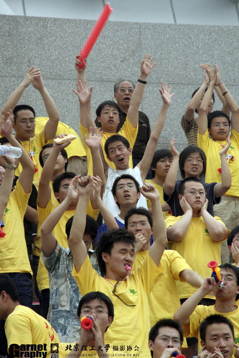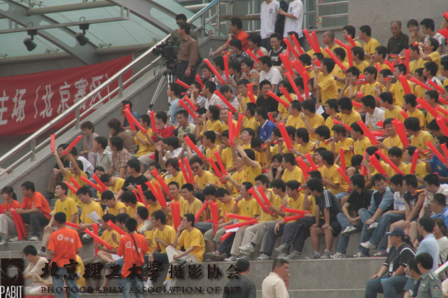 为了营造热烈的主场氛围,机械与车辆工程学院组织1200多名同学为主队呐喊助威。与场上我校足球队橙色队服相应,同学们身着黄色T恤衫,手持活力棒、喇叭、口哨等道具为我校足球队加油。