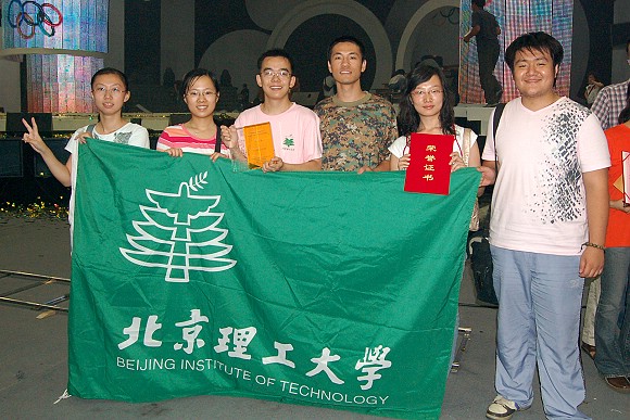 “青春奥运 你我同行”首届北京青少年多米诺大赛的大奖归属,也在晚会现场揭晓。北京工业大学代表队获得“志愿多米诺”大奖,北京农学院代表队和北京化工大学代表队分获最佳艺术表现奖和最佳科技创新奖,中国人民大学代表队、北京科技大学代表队、清华大学代表队、北京理工大学代表队(左四为我校领奖代表傅育良同学)获得优胜奖。历时三个月的大赛不仅加深了青少年对北京奥运的认知与体验,同时传播了志愿奥运的精神和理念,展示了首都大学生良好的精神风貌。
