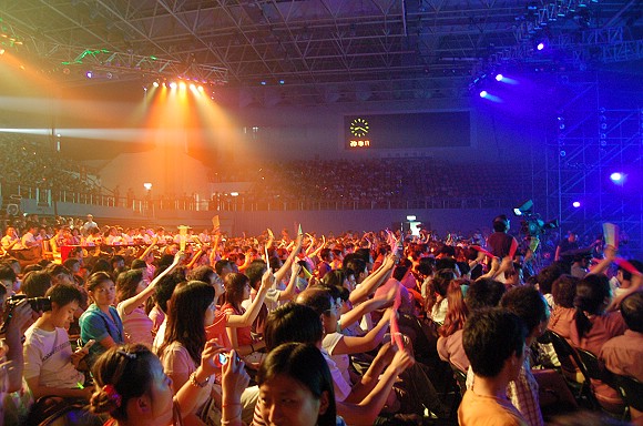 刚刚结束的世界杯似乎成了这个夏天的主角,但今晚比世界杯更加火热的就是“志愿北京”演唱会的演出现场。紧扣2008北京奥运会的主题,开场节目是别出心裁的,应用大型激光技术勾勒的各种奥运会体育项目的三维动态形象,在铿锵有力的中国鼓点的映衬下,呈现出恢宏的气势。在场数千名观众都被这一先进技术与中国古典艺术完美结合的节目所深深震撼、啧啧称奇。