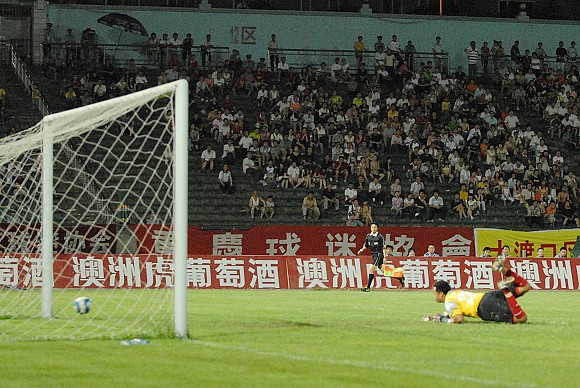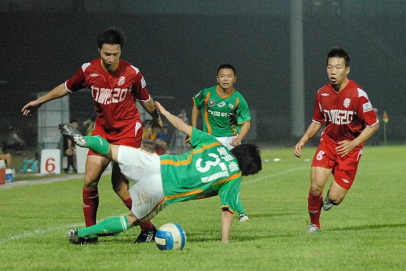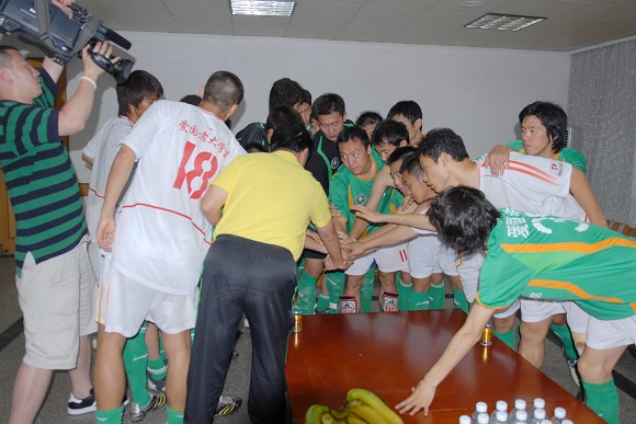 “实力不济、经验不足,输球太正常不过了。”金志扬的话似乎有些先知先觉。重庆力帆与北理工的比赛被安排在晚场举行,由于重庆地区气候闷热,再加上首次参加晚场比赛,学生军的小伙子们多少有些不适应。他们在上、下半时分别被力帆队外援桑托斯、范冬青打入两球。不过输球的老金赛后却很自豪:“一次通过定位球,一次通过界外球,力帆两个进球都是利用我们经验不足,但是队员们自始至终都没有放弃过争取破门。最后力帆队两名队员抽筋了,我们没有一个抽筋啊。魏新赛后带头向我们致敬。”