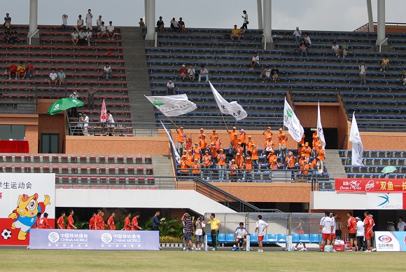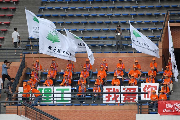 北京理工大学珠海学院的同学们专程从珠海赶来为母校足球队加油助威!