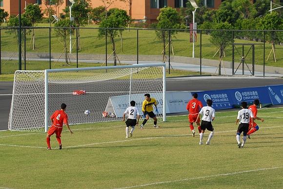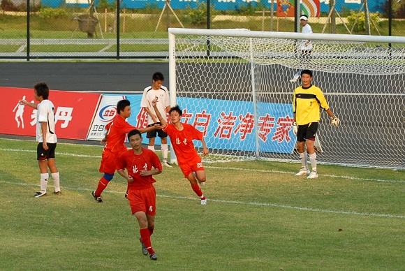 下半场第70分钟,北理工再获角球,与小组赛遇江苏时的第二个进球几乎同出一辙,又是20号队员武方虎乱军之中抢点头球射门,皮球同样是在对方守门员和后卫的眼皮底下射入网底,比分变为3:0。