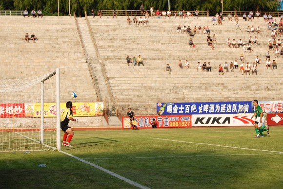 进入下半场,北京爱国者大学生队体力渐渐不支,几乎难以攻过半场,延边队的进攻也打得流畅起来。郑林国在左边路的突破非常犀利,多次创造机会。