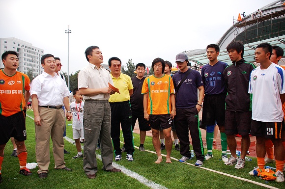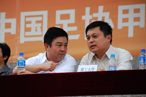 9月2日下午,中甲联赛第18轮北京爱国者队VS上海七斗星的比赛在我校东操场举行,刚刚接任北京理工大学校长职务的胡海岩教授在党委副书记、副校长杨宾的陪同下观看了此场精彩的比赛。