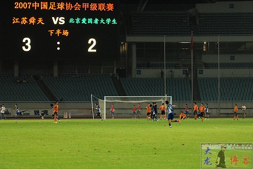 非常可惜的是,在离比赛结束还有5分钟的时候,守门员孙程的一次扑球脱手,再次给了江苏舜天锁定胜局的机会。此后江苏队连续换上体力充沛的三名队员,而北理工直到比赛结束也只换了一名受伤队员。