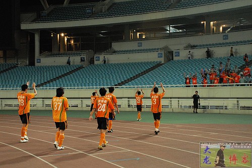 在北理工队员对到现场加油助威的爱国者助威方阵的几十名球迷鞠躬感谢之后,队员们和金指还算比较轻松地走向休息室,尚未退场的部分球迷高呼:“金志扬,好样的!”,金指也面带微笑的回应球迷:“你们江苏队要好好继续加油啊~~~”。