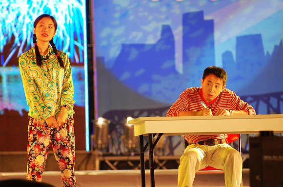 由二炮文工团范雷和我校07级本科生逯田菲共同表演的小品:《招考》