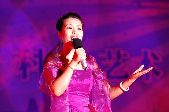 由校工会教师王丽静表演的女生独唱:《中国大舞台》