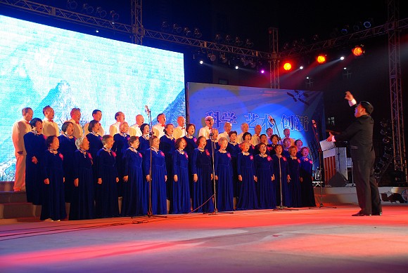 由老教师合唱团奉献的合唱:《太行山上》、《相聚在北京》