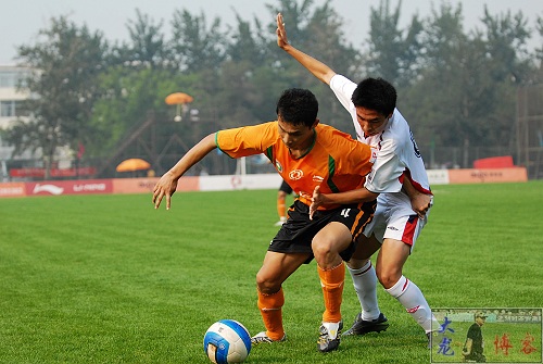 开场前10分钟内,客场作战的毅腾即发动全面攻势,占据场上主动。4分钟时,毅腾外围一脚远射,偏出球门,但是为学生军的防守提了一个醒。第6分钟,毅腾队右路再次发动快速进攻,逼得角球,12号张靖洋主罚,4号于涛抢到前点补射,球稍稍高出横梁。随后爱国者发动右路进攻,一个富有创意的直传,可惜前场没有球员包抄。第9分钟,毅腾连续获得两次角球,一次被爱国者队后卫破坏,另一球被于飞在争顶中将球顶飞。