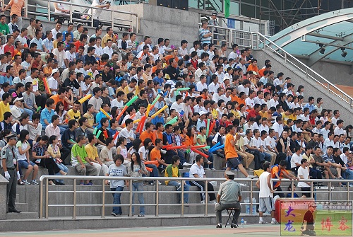 今年中甲比赛已经没有降级的悬念,但是爱国者大学生队还是值得关注的,在学生球迷的加油期盼中,作为一支非职业球队,爱国者大学生队所表现出的全力以赴、全力拼搏的精神,让所有人感动。本场比赛爱国者总裁冯军先生也亲临现场为学生能够军加油呐喊。同时爱国者球迷迷协会和绿色狂飙球迷协会的人员也在现场观战,并交替以“北理工加油,爱国者加油”、“理工!爱国!”、“爱国者,进一个”的口号和震耳的鼓声来为学生军加油呐喊。