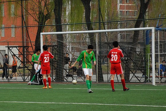 下半场开始10分钟,北理工队员李东昊远射为北理工再添一个进球。
