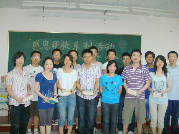 为了坚持全面协调可持续发展的基本要求,机电学院05级党支部举办了“感恩母校”系列活动之“知识传承”征书送书活动,将大四学生四年来所用的教材送给良乡校区的同学。6月9日下午,在良乡校区成功举办了交接仪式,机电学院07级辅导员徐莹莹老师,05级党支部党员以及07级的各班级干部参加了此次活动。