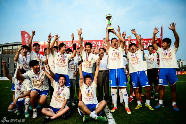 2015年6月18日,伴随着一声哨响, 2014-2015特步中国大学生足球联赛超级组总决赛落下帷幕。在多日降雨的南京,北京理工大学足球队克服天气、场地和客场等不利因素,奋勇拼搏,最终,凭借下半场获得的一粒点球,由队长韩光徽破门,以1:0战胜河海大学,实现了自己的“八冠王”和第二次“三连冠”之梦。同时,北京理工大学队主教练袁微获“最佳教练员”奖项,门将刘天鑫获“最佳守门员”奖项,韩光徽获“最佳运动员”奖项。