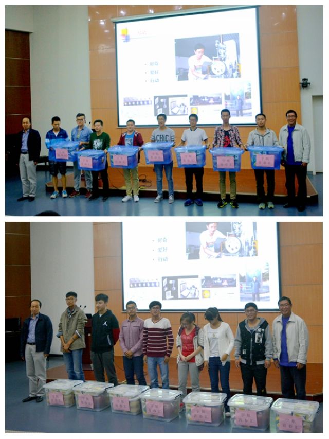 张青山常务副院长和胡更开院长为2015级宇航相关专业学生代表赠送了“宇航青春汇大礼包”,包括了球类、健身器材、棋类等体育用品,学院为同学们挑选的《大学生职业规划》等书籍,学院为同学们订制的《中国航天报》等专业材料。