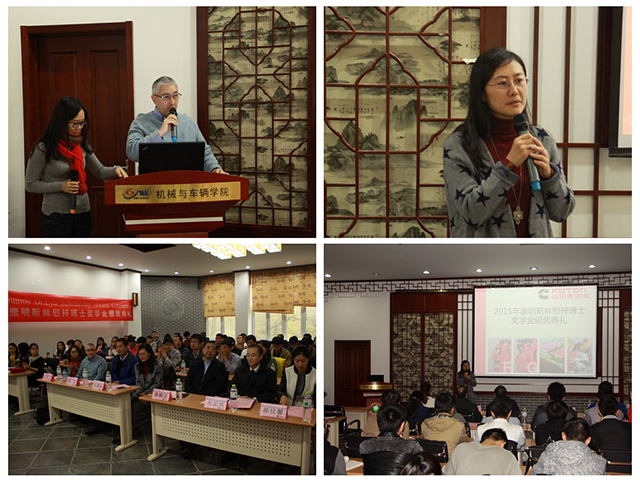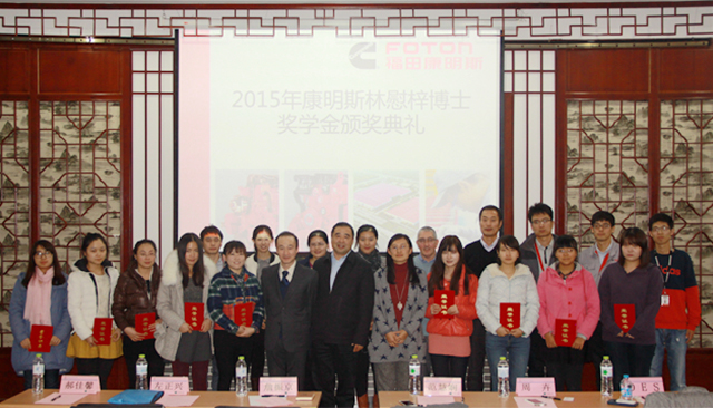 2015年11月10日,北京理工大学机械与车辆学院2015年度康明斯林慰梓博士奖学金颁奖仪式在中关村校区车辆重点实验楼报告厅举行。出席本次颁奖仪式的有北京福田康明斯发动机有限公司党委书记詹振京、北京福田康明斯发动机有限公司人力资源部总监范慧娴、北京福田康明斯发动机工厂厂长 DES 、ISG 发动机技术总工周卉、机械与车辆学院党委书记左正兴、奖学金评审委员会主任郝佳馨以及北京福田康明斯发动机有限公司的其他嘉宾。