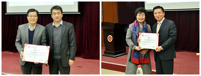 最后,法学院党委书记杨海,法学院副院长张艳丽为2015年新聘的法律硕士专业学位研究生校外导师颁发了聘书。
