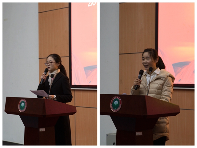 颁奖结束后,全学年优良代表居丝薇同学发言,她结合自己的大一“忙”与“茫”的经历,劝勉学弟学妹们学会选择自己的学习生活方式,持之以恒,则必定会有收获。全奖宿舍代表静园A101梁卓楠同学就如何建设优秀的宿舍谈自己的看法,列举了保持宿舍卫生,营造良好的学习氛围等五个方面的秘诀,号召室友之间互相珍惜、相互磨合、互相帮助,共同进步。