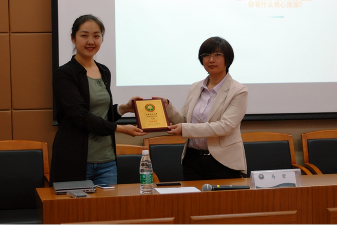 在本次创业课堂开设之际,学院特聘马莹女士为管理与经济学院大学生创业导师。管理学院团委副书记刘芳冰代表学院为马莹女士颁发聘书,感谢马莹女士对学院创业基础教育的支持与付出。