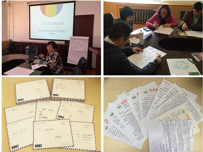开展专项辅导是此次管理学院德育开题的特色工作。学院领导在深度了解学生现状和需求后,学院开展了专门面向辅导员、班主任等德育开题指导老师的大学生生涯启蒙教育专题培训,以生涯教育为牵引,结合学涯规划思路,将职业生涯规划理念融入德育开题专项辅导,并从“生涯愿景唤醒、生涯行动促进、生涯觉察检验”三个模块入手进行框架设计和辅导工作,以提升指导教师的专业指导能力,强化教师指导效果。随后,各班主任开展了班级内部的德育开题深度辅导工作,面向学生一对一进行学业、生活、人际、心理等方面的解惑和指导,引导学生学会规划,合理安排时间,辅导学生完成德育开题报告提纲。此外,为鼓励管院学子更好的进行自我督促和自我激励,促进其德育能力的提升,学院要求每位同学为自己写下一封“写给两年后自己的一封信”,由学院保管,在两年后的德育中期答辩时再下发,同学们可对照当年的期望与祝福,督促自查,促进自身更全面的发展。