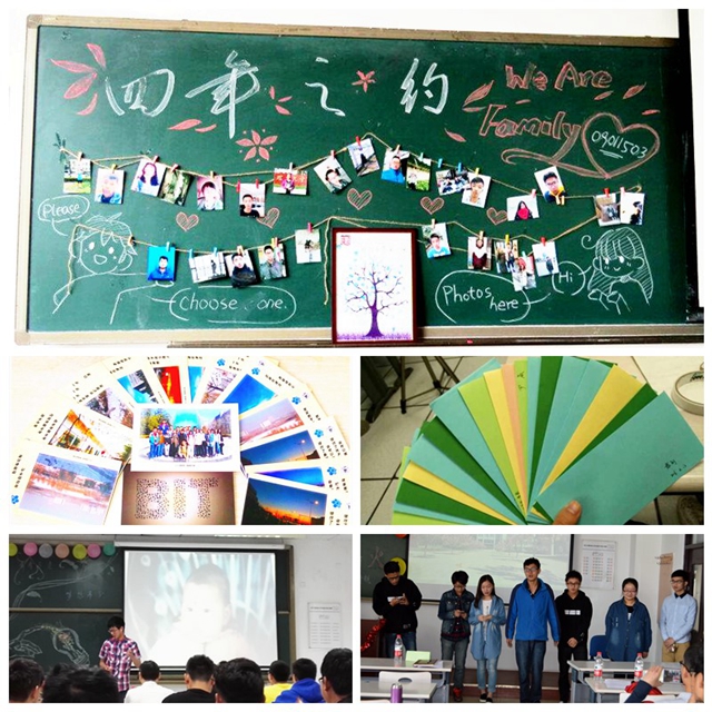 材料学院此次开题活动主题鲜明,形式多样,内容丰富。各班依据学院制定的“德育六边形”大主题,结合班级特点制定了班级德育开题主题,如09011502班的“遇见未来”、09011503班的“四年之约”等;除了各具特色的开题主题外,各班还采取了不同的报告会形式,并添加各种环节丰富德育开题,如制作班级明信片、邀请学生家长作为见证人,有些班级还添加了“儿时的我”、“父母来信”、“青春宣誓”等环节,这些环节既丰富了德育开题报告会,又能让同学们在规划大学的同时互相鼓励、增强自信、懂得感恩和回报父母,可谓一举多得。