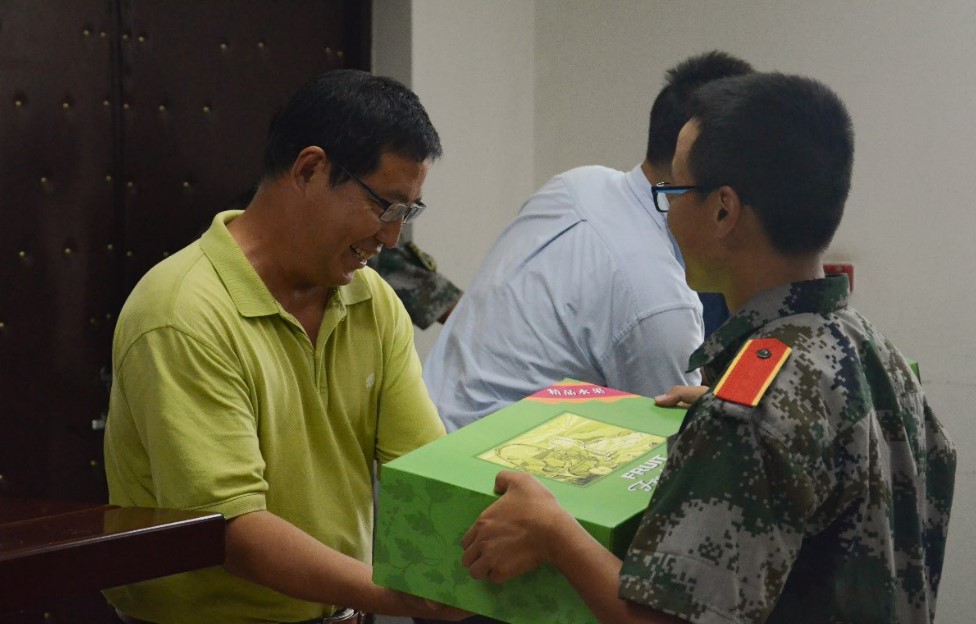 接下来,胡更开与其他院领导一起为同学们送上了中秋礼盒以及满满的祝福。院领导们亲切地与同学们握手,详细询问军训期间的生活情况。小小的盒子里,不仅仅是月饼、水果这类节日礼物,更是传递着宇航学院对所有新生的祝福与关怀。