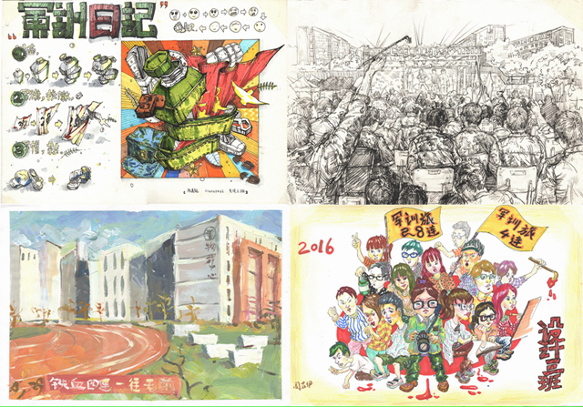 编辑:欧阳哲 审核:孙飞 阅读次数:2016年9月27日下午,北京理工大学设计学院2016级本科生“画说军训”主题作品展揭幕仪式在良乡校区徐特立图书馆一楼艺术馆举行。此次展览作品主要为学院2016级新生军训期间的优秀作品,学生工作处副处长徐贵宝、综合办公室主任吕晶,设计学院副院长副书记孙飞、分团委书记欧阳哲以及设计学院2016级本科生出席了此次活动。揭幕仪式由设计学院分团委副书记张建强主持。