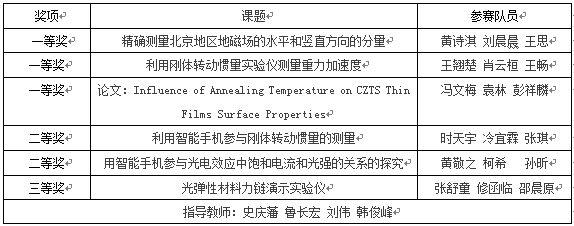 北京市大学生物理实验竞赛是北京市教委主办的大学生学科竞赛,每年有近四十所高校参加。竞赛宗旨是为了激发大学生对物理实验的兴趣,培养大学生的创新能力、实践能力和团队协作意识,发掘大学生潜能,促进物理实验教学改革。今年的竞赛题目是:(1)组装仪器测量与地球有关的参数;(2)用智能手机参与完成经典的物理实验或设计新的物理实验;(3)物理思想清晰,物理知识点明确的实验制作;(4)物理思想清晰,与实验有关的科研论文或教学论文。竞赛采取匿名方式,由评审专家根据作品的科学性、新颖性、实用性以及选手现场实验、展示、答辩等表现进行打分。