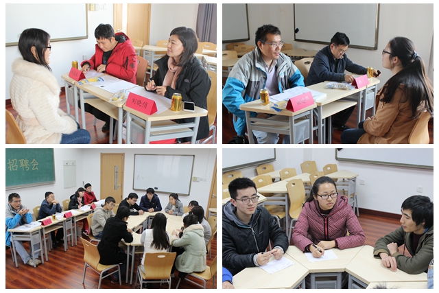 本次答辩会以面试的形式进行,共包含两个环节:单人面试和群面,将所有同学分为三组:考研组、出国组、工作组。由杨宾校长和梁建华老师担当考研组的评委,刘晓俏和刘惠康担任出国、工作组的评委。班级同学按照既定的顺序依次进入面试区进行面试,依据评委提出的问题进行回答,每位评委也都根据同学的表现进行记录和评价。单面结束后,分成三个组依次进入面试区进行群面,围绕某一个情景进行讨论,最后每组选派一个同学代表,向老师陈述最后讨论的结论。每一位参与的同学都积极地发表了个人意见,进行了激烈的讨论。
