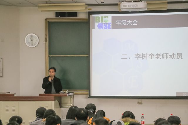 李树奎老师为同学进行动员,并结合马克思思想中的必然与自由关系,从挂科的严重后果谈到成绩优异带来的好处。李老师提到自己当年在北理学习时也曾是“学霸”,取得了很多的满分,优异的成绩为他提供了许多机会,也使他收获了自信和爱情。最后还提醒同学们挂科并不是那么遥不可及,稍加懈怠就可能沦陷其中,对待学习就要提起十二分的精神。最后李老师就下学期的分专业事宜进行了预热。