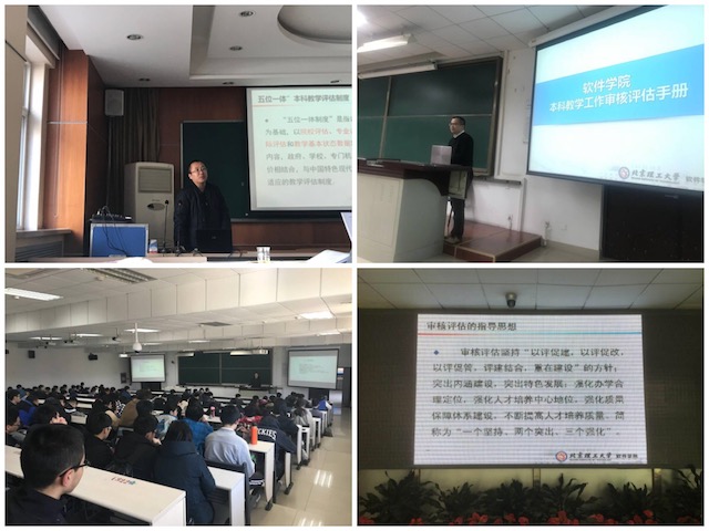 教学副院长薛静锋带领大家学习了学校和软件学院本科教学评估工作报告,系统、深入介绍了审核评估工作情况、学校工作情况和学院工作情况。报告全面梳理了本科教学审核评估的制度、指导思想、考察重点和主要工作内容,学校的办学定位目标、人才培养目标及围绕立德树人所开展的改革举措和保障体系。