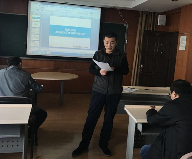 编辑:徐韵韵 审核:曲大成 阅读次数:2017年11月28日下午,软件学院在软件楼207会议室召开全院教工大会,集中学习宣贯本科教学审核评估工作,会议由学院党委书记曲大成主持。