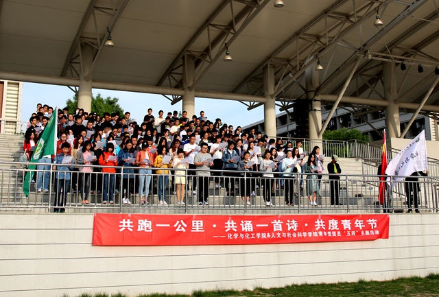学院以学生党员、团员干部、团员青年为主体集中开展主题教育活动。5月3日,学院组织开展学习习近平新时代中国特色社会主义思想和党的十九大精神宣讲,学习宣讲小组骨干成员、2017级研究生第一党支部书记李赫向2017级全体本科生讲解入党流程,宣讲十九大精神。5月4日,人文学院携手化学与化工学院,共同开展“共跑一公里·共诵一首诗·共度青年节——五四主题教育活动”,青年党员、团员200余人共同参与升旗仪式、共读《少年中国说》(节选)、重温入党入团誓词。人文学院党委副书记、副院长李冰向同学们重申五四运动的重要意义和五四精神的重要内涵,并结合习近平总书记5月2日同北京大学师生座谈中所发表的重要讲话,向同学们发出了传承五四精神、担当历史使命、奋斗民族复兴的殷切期望。