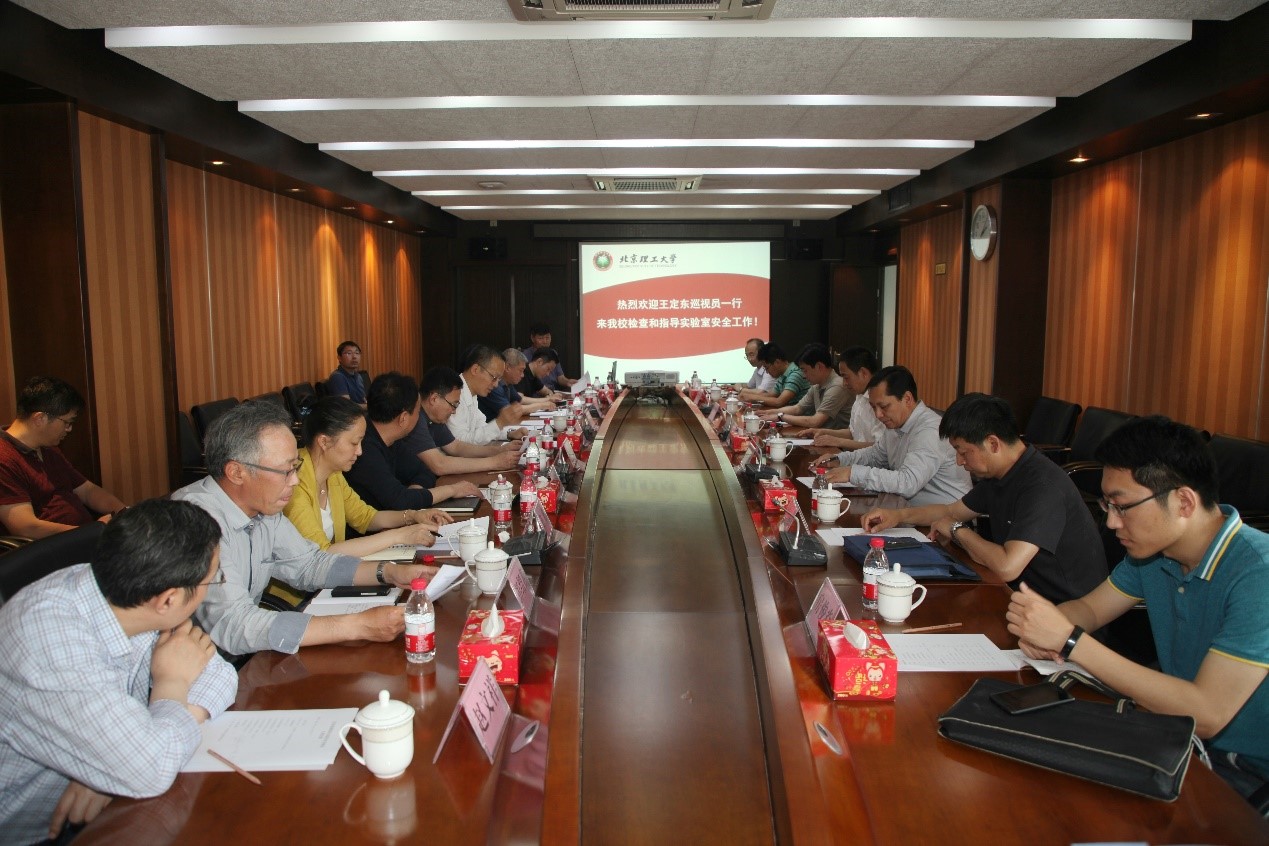 我校学校办公室、保卫处、实验室与设备管理处、良乡校区管理处、学生工作处、科学技术研究院、分析测试中心、化学与化工学院、先进结构技术研究院相关负责人参加了检查工作。