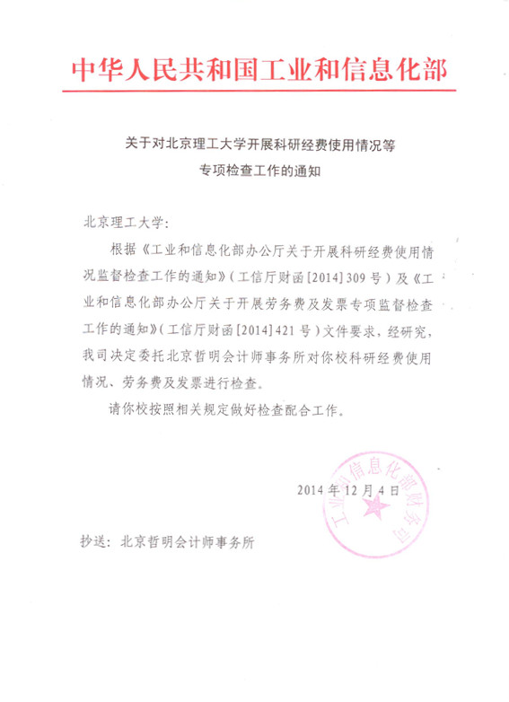 转关于北京理工大学开展科研经费使用情况等专项检查工作的通知