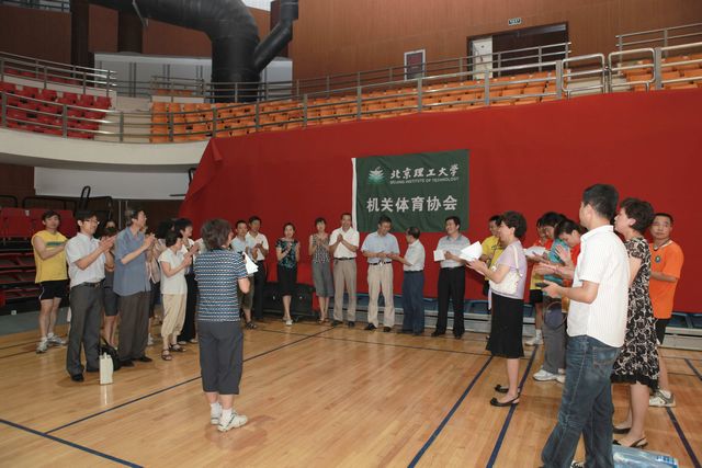 成立仪式上,张淑玲向大家介绍了成立机关体育协会的原因和目的,介绍了体育协会下设的乒乓球队、羽毛球队、篮球队和足球队四个球队的设置方式,宣布机关体育协会会长由机关工会副主席郑重担任。之后,协会会长郑重宣布了机关体育协会副会长和各队队长及组建人员名单:体育协会副会长由机关工会筹备组体育委员薛伟、李含巍担任,羽毛球队队长由薛伟兼任,羽毛球队下设三个小组,分别由国资处栗兴、保卫处马小龙和研究生院黄明福担任;乒乓球队组建人由宣传部桑硼飞副部长担任;篮球队队长由实设处李晋担任;足球队队长由招就处宋翔担任。此外,机关工会还将为各球队提供服装、训练场地等方面的支持。其中,羽毛球队训练时间为每周二下午4:00-6:00。