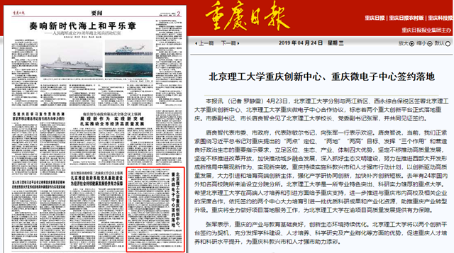 【重庆日报】北京理工大学重庆创新中心、重庆微电子中心签约落地