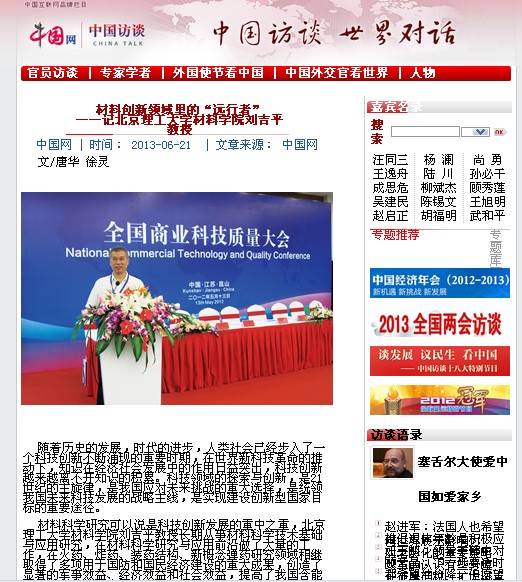 多年来的孜孜以求,多年来的无私奉献,刘吉平将所有的青春热情都挥洒在了材料科学研究领域,为推动我国材料高新技术的快速发展打下了良好的基础。在材料创新领域锐意进取,一路前行,刘吉平无怨无悔。