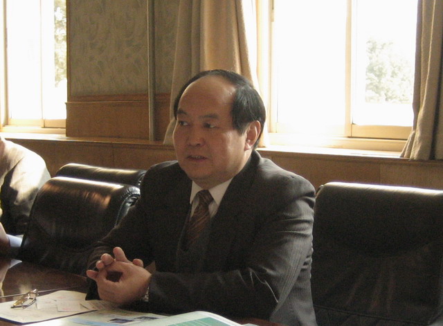 国际交流合作处范瀛处长向来访的客人介绍我校