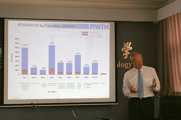 Poprawe副校长亲自介绍了亚琛工业大学的历史发展、国际合作等情况。并希望能够加强与中国大学的交流与合作,接受我校优秀学生到亚琛工业大学学习。