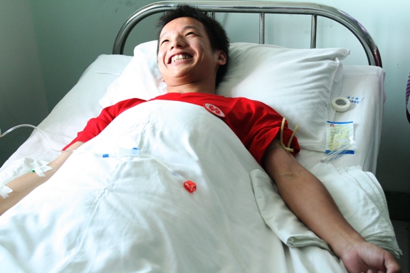 8点30分,外周血采集正式开始,俞锦声同学左右手臂各连接一次性导管,他的血液经外周循环后,分离出可供救助白血病等血液病患者的50-100毫升的造血干细胞混悬液。经过4个小时的分离,分离成功,凝聚着北理学子爱心和生命的干细胞,在第一时间送往机场,直接飞赴远南方,将注入另一个17岁生命的体内,将挽救另一个鲜活的生命。捐献后,俞锦声身体状况一切正常,遵照医嘱卧床静养,预计24日即可返校上课。