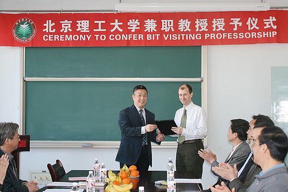 2009年4月15日上午,北京理工大学兼职教授聘任仪式在中心教学楼620会议室举行。赵长禄副校长,国际交流合作处王庆林处长,人事处黄晓鹏副处长,理学院姜艳副院长、化学物理学科特区副所长张韫宏以及理学院部分教师和学生出席了聘任仪式。