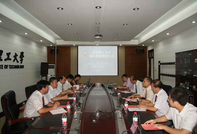兼职教授仪式由国际交流合作处处长王庆林教授主持。出席仪式的有:北京理工大学副校长赵长禄教授、人事处副处长魏名山教授、宇航学院院长胡更开教授、副院长唐胜景教授、副院长王宁飞教授、飞行器工程系系主任于剑桥副教授、郭杰博士等。