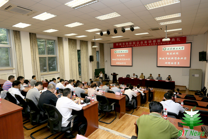 9月23日,北京理工大学管理与经济学院高级管理者培训与发展(EDP)中心与山东省邹城市合作举办的邹城市创新型企业家研修班在主楼241顺利开班。邹城市科技局局长陈伟,中共邹城市委组织部干教科科长王雷,北京理工大学管理与经济学院书记李金林,副院长董沛武,EDP中心主任郑莉以及来自邹城市的四十余名学员出席了开学典礼,会议由王雷主持。